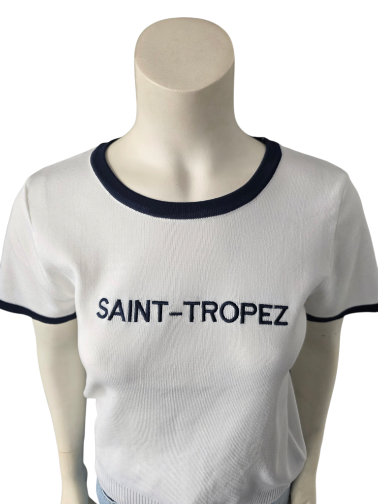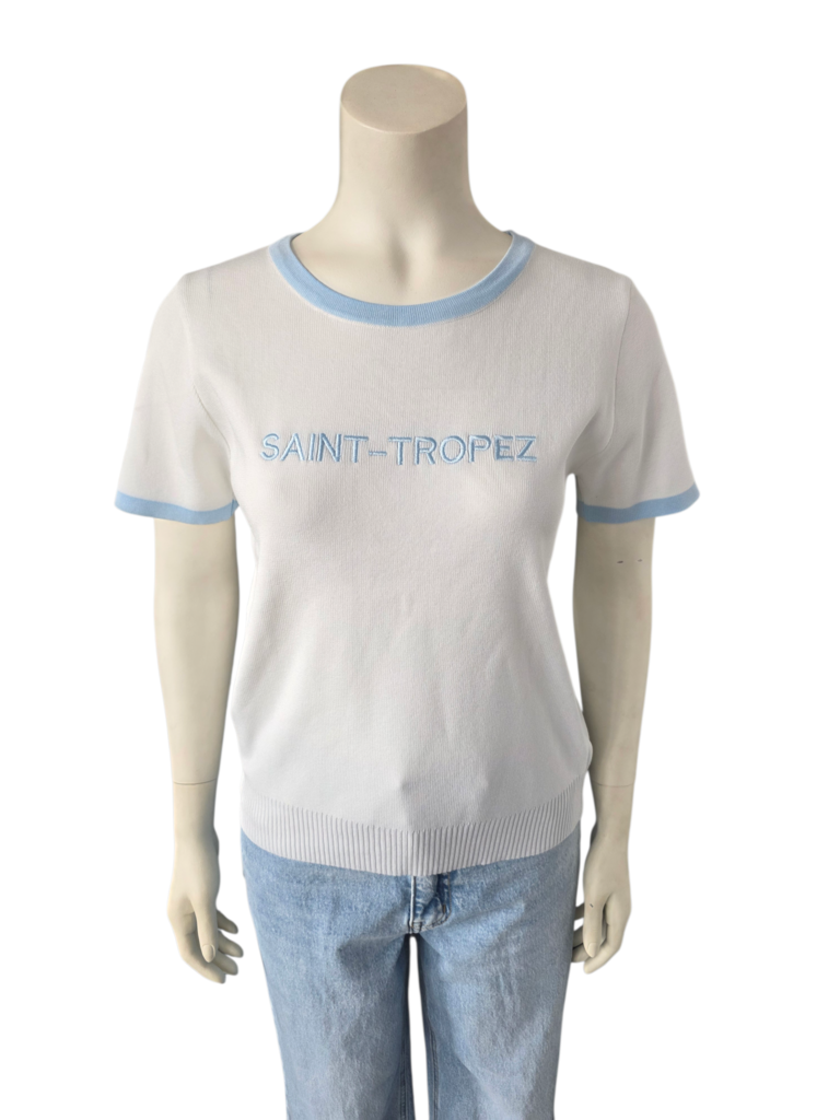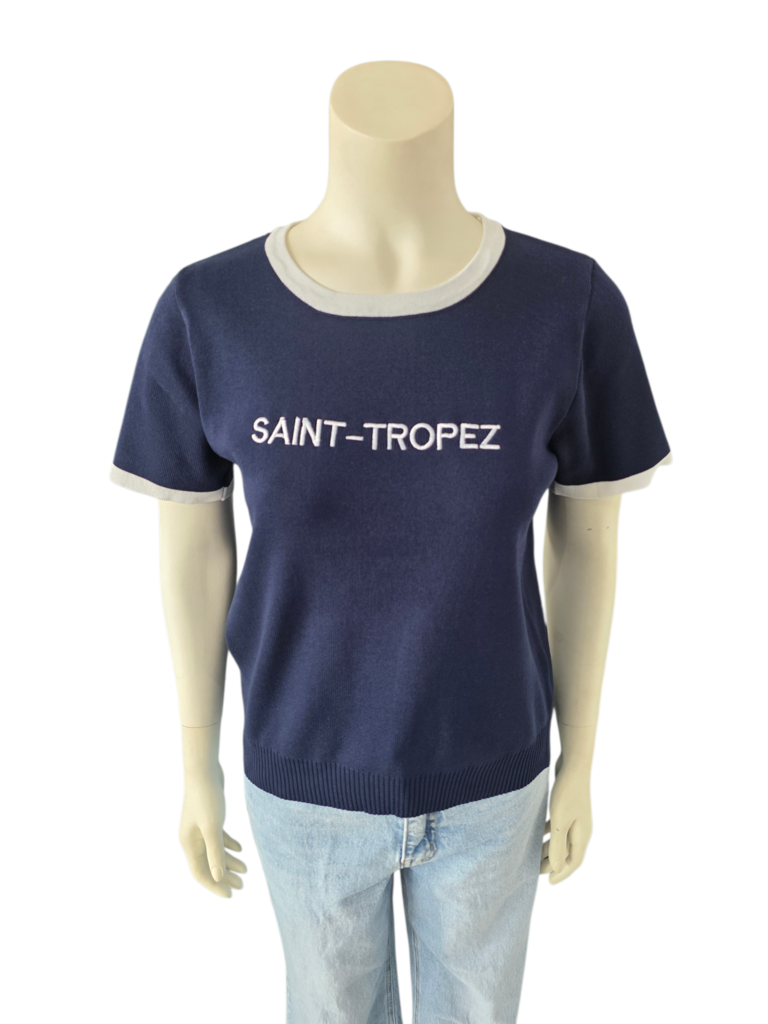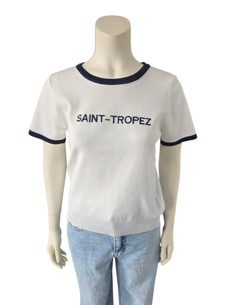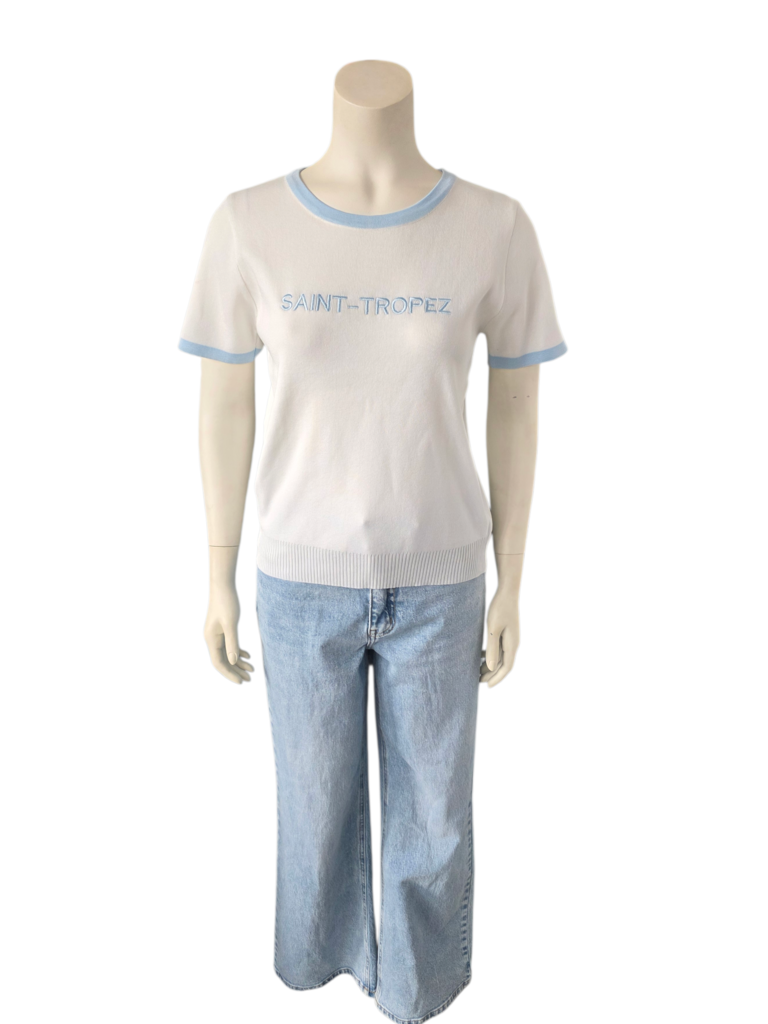 Heerlijke Basis top van By Clara met de tekst Saint-tropez.